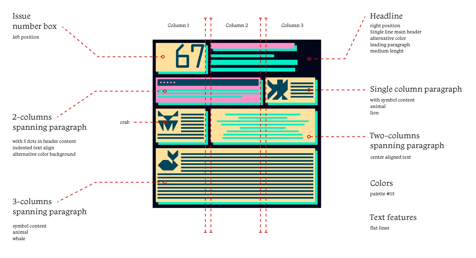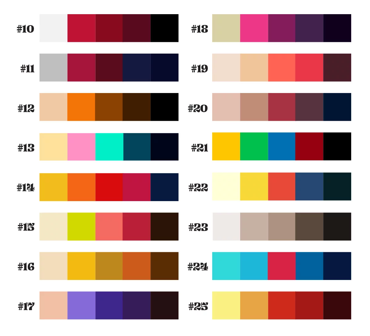 We have used our publication’s covers to source our color palettes. In total 16 editions of Redlioneye Gazette covers were used to extract 16 color palettes, with 5 colors each. Seamlessly binding the color scheme of Gazettes to our original body of work.