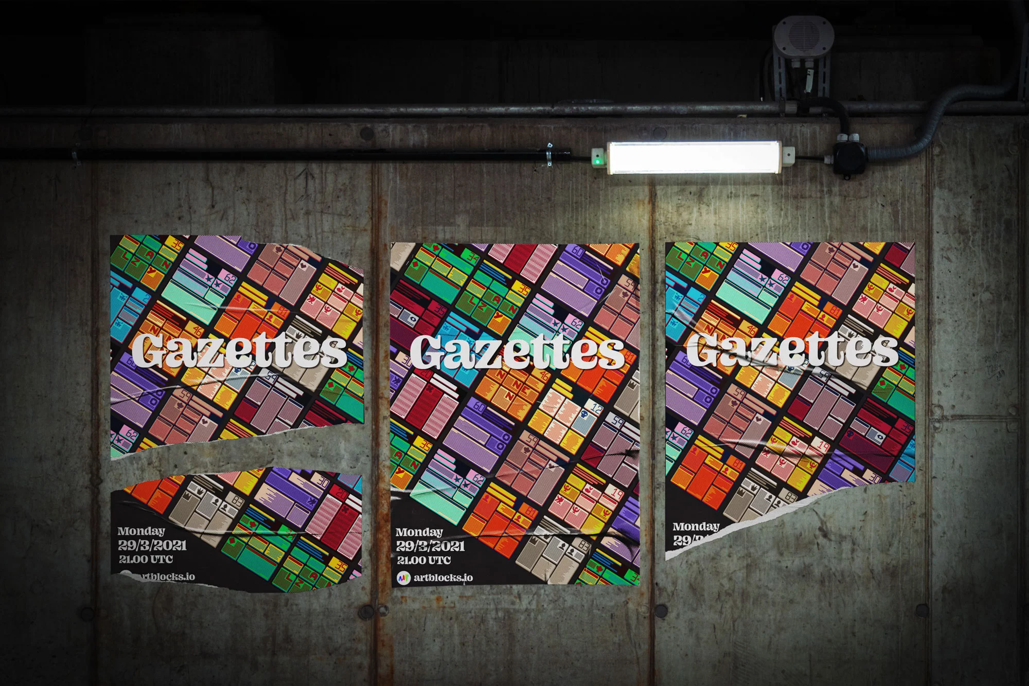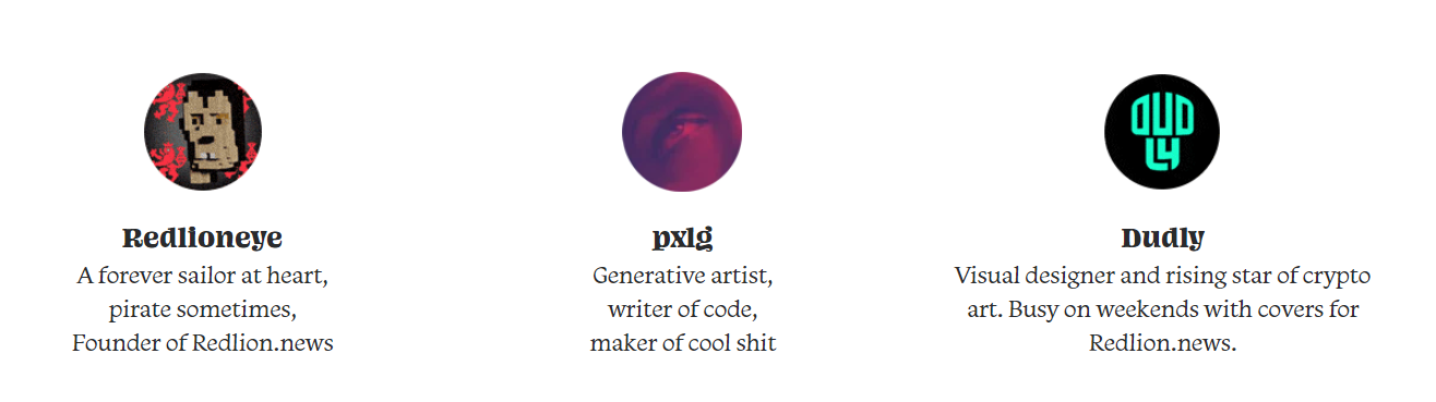 Gazettes is a generative art project by the Redlioneye Gazette team and Pxlq. The project pays tribute to print media and highlights classic formatting such as paragraph layouts, headings, variously styled texts, and images.