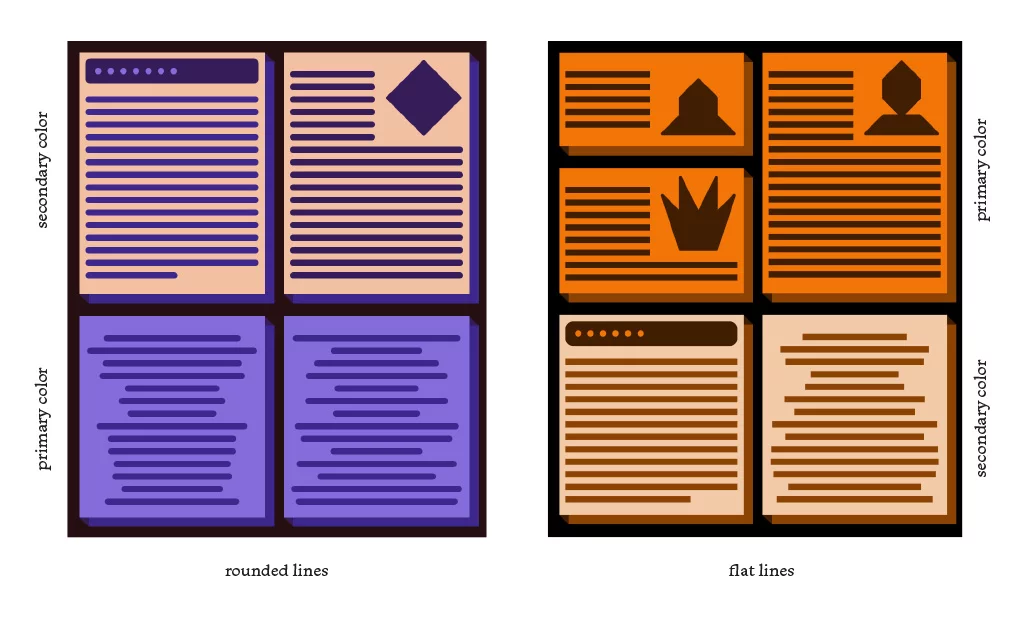 Lines can be sharp or rounded, their 2 colors are randomly chosen from our palettes.
