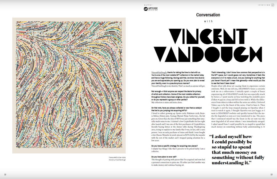 A native NFT magazine dedicated to exploring all aspects of generative art—the artists behind the code, commentaries on art and themes, historical developments, and collectors.